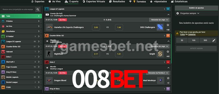 O 008bet oferece uma grande seleção de opções de apostas em e-sports com probabilidades competitivas